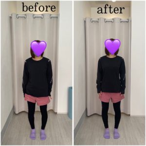 Afterの姿勢は、背筋が伸びて、頭の位置も良くなっています。