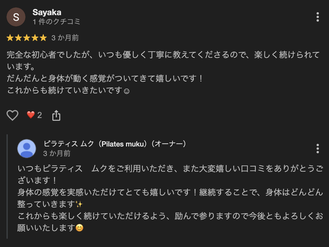 三田市ピラティス|「だんだんと身体が動く感覚がついてきて嬉しいです!」 2026 3/20 お客様の声 2026年3月20日 お客様の声 よかったらシェアしてね! URLをコピーしました! URLをコピーしました! 三田市ピラティス|「マンツーマンでしてくださるのがすごく良いと思いました」 三田市ピラティス|「60代の私でもマシンピラティスに取り組むことができました」 この記事を書いた人 pilates muku 関連記事 三田市ピラティス|様々なお声 2026年3月20日 三田市ピラティス|「日々の腰痛が和らぎました」 2026年3月20日 三田市ピラティス|「1回で身体がほぐれてポカポカしました♪」 2026年3月20日 三田市ピラティス|「カウンセリングも丁寧で安心して行えました」 2026年3月20日 三田市ピラティス|「身体がほぐれました」 2026年3月20日 三田市ピラティス|「身体がほぐれました」 2026年3月20日 三田市ピラティス|「マシンも新鮮な感じがして使ってて楽しかったです!」 2026年3月20日 三田市ピラティス|「60代の私でもマシンピラティスに取り組むことができました」 2026年3月20日 コメント コメントする コメントをキャンセルコメント ※ 名前 ※ メール ※ サイト 次回のコメントで使用するためブラウザーに自分の名前、メールアドレス、サイトを保存する。