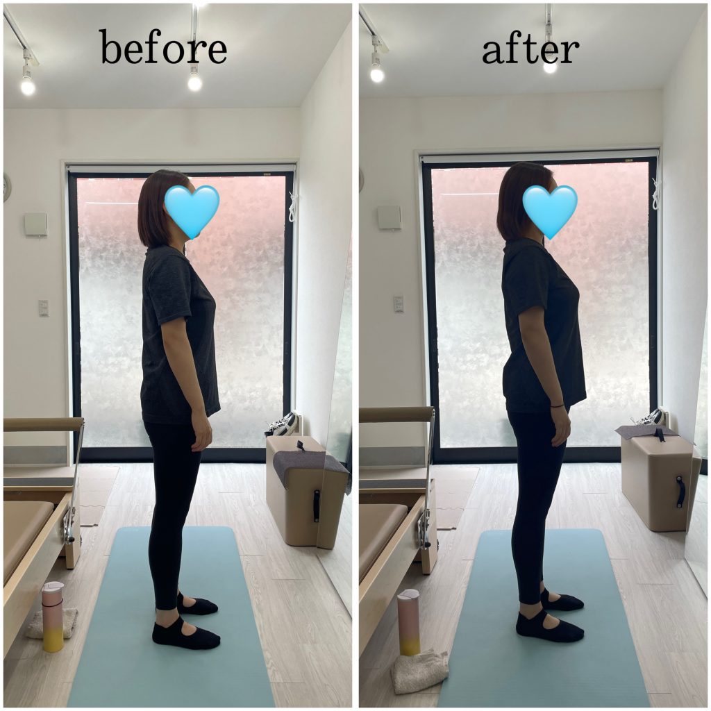 マットとマシンピラティスのパーソナルレッスン6回目のbefore afterです。 afterではバストとヒップの位置が引き上がり、女性らしいボディラインがつくられています。 もともと体の後ろのラインに硬さがあり、こういった方は体全体が後ろに引っ張られるた...